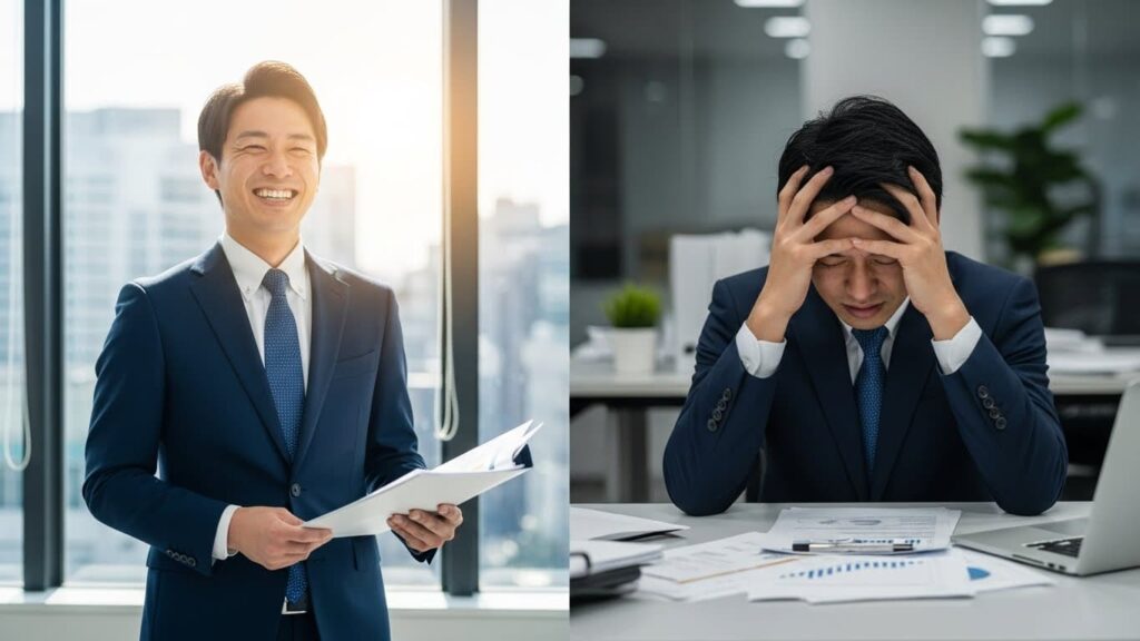 フルコミッションが「きつい」と言われる背景には、収入の変動幅が大きく、成果が出ない期間が精神的負担となる点があります。