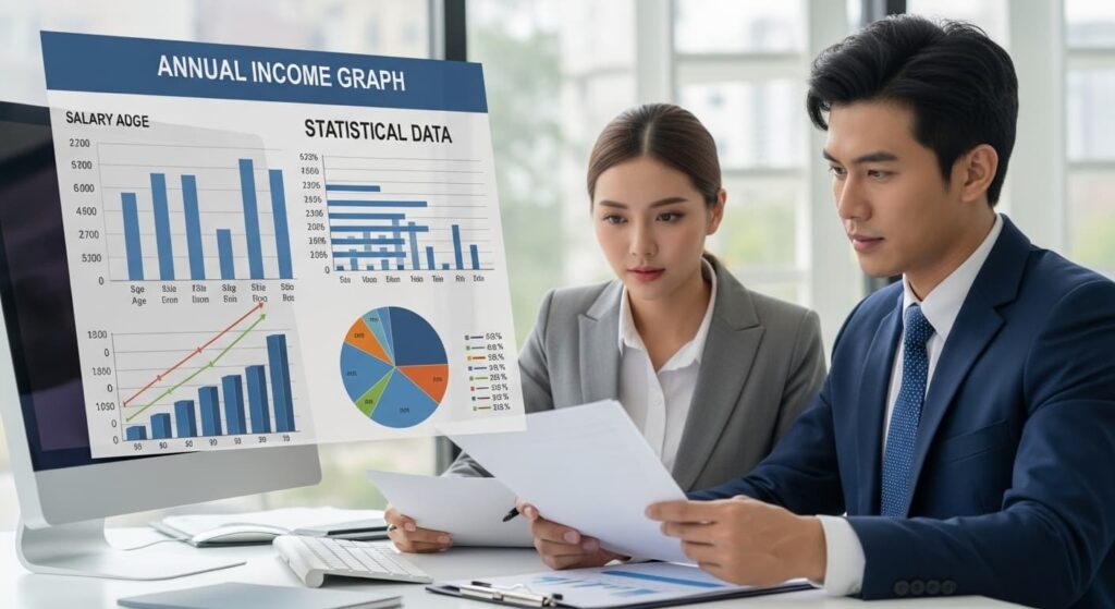 大手生命保険会社の例では、固定給+賞与で、成績が平凡でも一定水準の収入が保証される一方、歩合を含めると全体年収が数百万円増えるパターンが多数です。