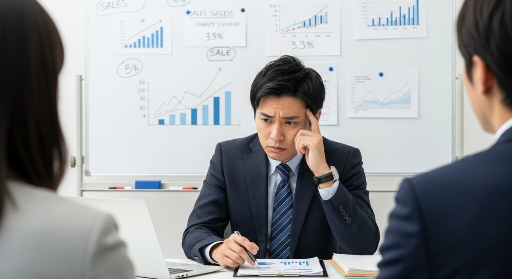 多くの営業マンがつまずくポイントは、根性や努力不足ではなく「仕組みの欠如」です。ここでは、成果を妨げる3つの主要な原因と、改善策を解説します。
